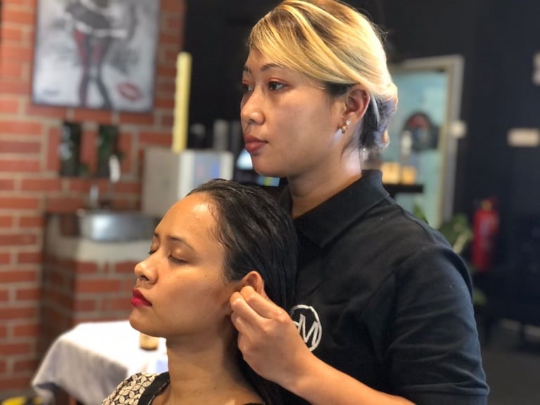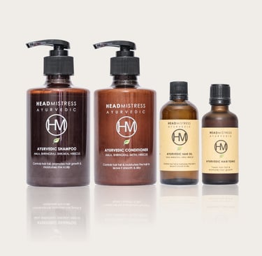 The most comprehensive way to treat it is to pay a visit to your nearest Headmistress branch and get a personalised consultation along with a relaxing Marma massage. You can, however, also treat it at home in just a few short minutes by regularly applying our Ayurvedic hair products, such as our Shampoo, Conditioner, Hair Tonic and Hair Oil, to help take care of your hair.