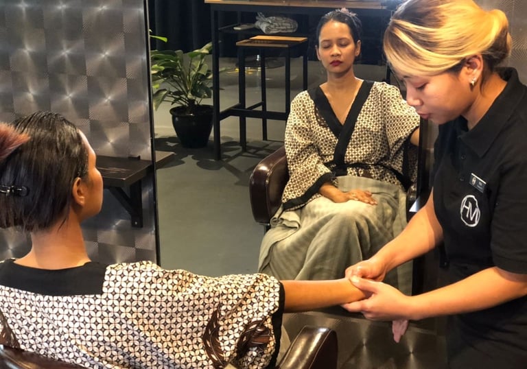 Promotes natural glow and radiance to the face. Ayurvedic oils deeply nourished and heals the skin. Marma face massage (Mukha abhyanga) detox, tighten and boost blood circulation . Combines with Ayurvedic Shiroabhyanga treatment to promote healthy scalp and luscious hair . Rejuvenate & detox .